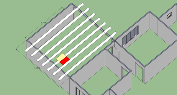 Preciso de uma ajuda, fiz uma laje com 5mx4m, as vigotas vencem o vão de 4m de ambos os lados para beiral de 0,80cm dos dois lados. Foi deixado 3 lajotas de abertura para alçapão, pois estou achando que ficou muito estreito e gostaria de aumentar, fazer um quadrado mesmo, porém teria que cortar a vigota, existe algum problema em fazer isto? No anexo exemplifico bem o que estou pensando em fazer, em vermelho atual, em amarelo o que pretendo fazer.