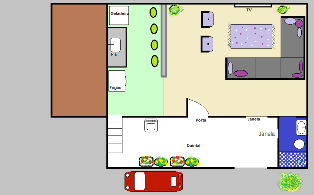 A casa pelo que me lembre tem 3x6=18m2 (está correto)? Para fazer em baixo banheiro sala e cozinha, estou colocando um anexo para ilustrar, não está muito bom porque minha Noiva fez no Paint.
